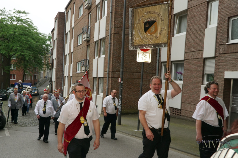 Nach der Proklamation und einer kleinen Ansprache, geht es dann für das neue Streuengelchen auf die große Runde durch das Jakobsviertel. Immer wieder schön zu sehen, was für eine Signalwirkung ein Trommel- und Pfeiffercorps hat. Sogar aus den Restaurants und Geschäften kommen die Leute an den Straßenrand und sehen sich das Streuengelchen und den Verein an. Auch die Anwohner sitzen reihenweise in den Fenstern.