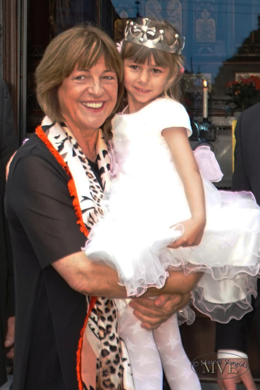 Im Anschluss an diese Runde, überreicht das Vorjahresengelchen die Krone. Unterstützt wird Sie dabei immer von der Bürgermeisterin oder wie in diesem Jahr von unserem Oberbürgermeister Marcel Phillip. Die Proklamation ist oft gar nicht so einfach, denn die Haare der kleinen Engelchen sind natürlich fein hochgesteckt. Zum Glück kann Ulla Schmidt da meist aushelfen :o)